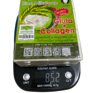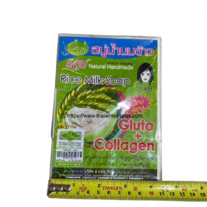 Jam Rice Milk Gluta Collagen Soap is a herbal cleansing bar enriched with jasmine rice extract, formulated for daily face and body cleansing. This value pack includes 12 soap bars and is suitable for all skin types.