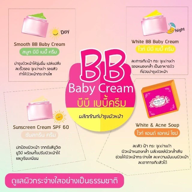 - Smooth BB Baby Cream: Helps nourish the face, moisturize, radiant, reduce wrinkles, adjust the skin to be white and clear