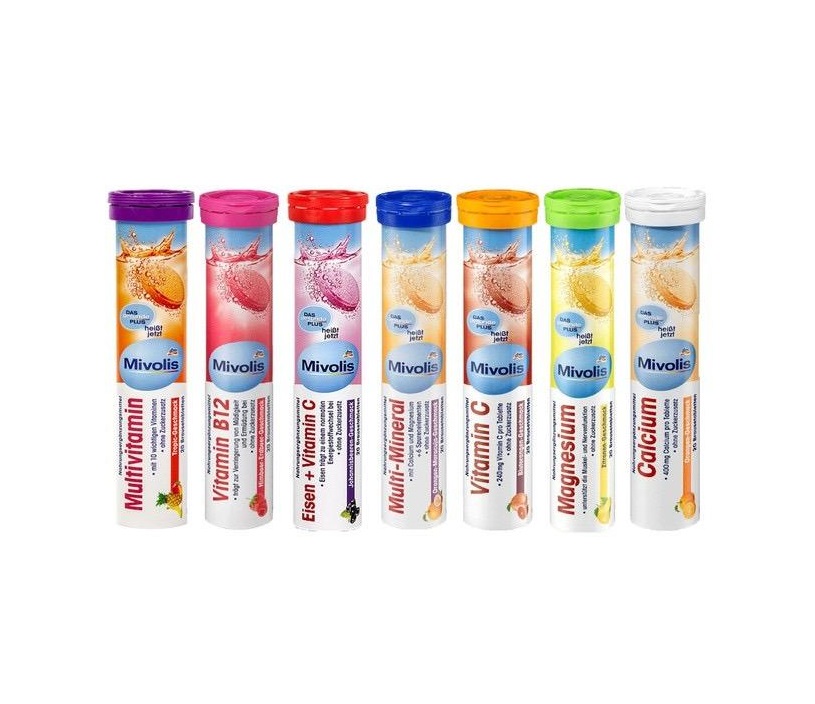 Das Gesunde Plus Mivolis Effervescent Vitamin Tablets are German-made dietary supplements in convenient effervescent form. Simply dissolve one tablet in water for an easy-to-consume daily vitamin drink. Available in multiple variants to suit different nutritional needs.