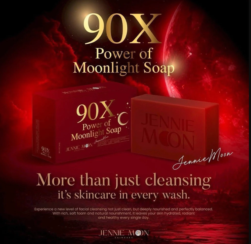 Reveal your most radiant glow with Jennie Moon 90x Power of Moonlight Soap — a premium brightening bar infused with 90x whitening power for visibly fairer, smoother, and glowing skin.