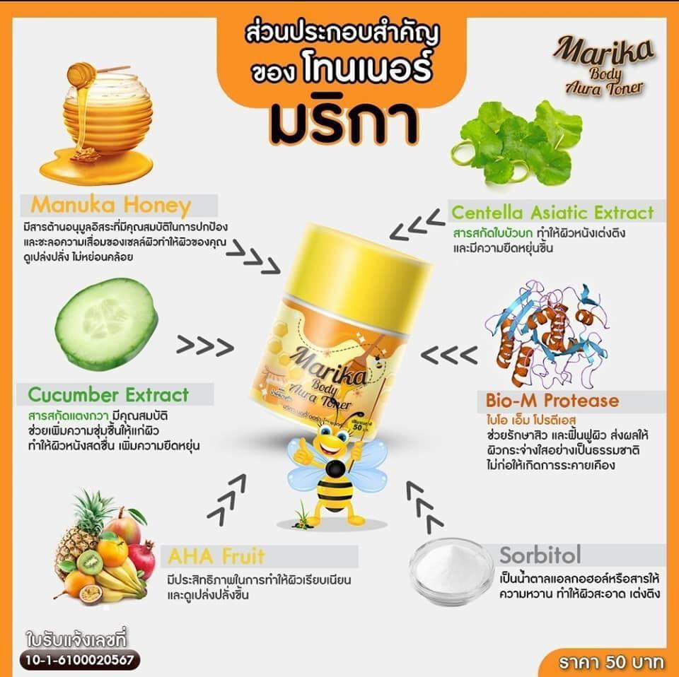 Marika Body Aura Toner is a body toner formulated with Manuka Honey to help improve the appearance of dark areas on the body. Designed for use before showering, it helps prepare and refresh the skin as part of your body care routine.