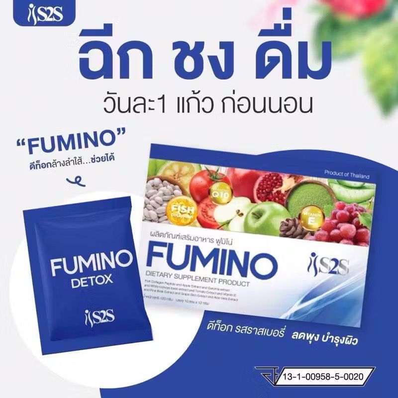 S2S Fumino Detox is a raspberry-flavored dietary supplement drink in convenient sachet format. Formulated with natural extracts and collagen, it is designed for easy daily preparation by mixing with water.