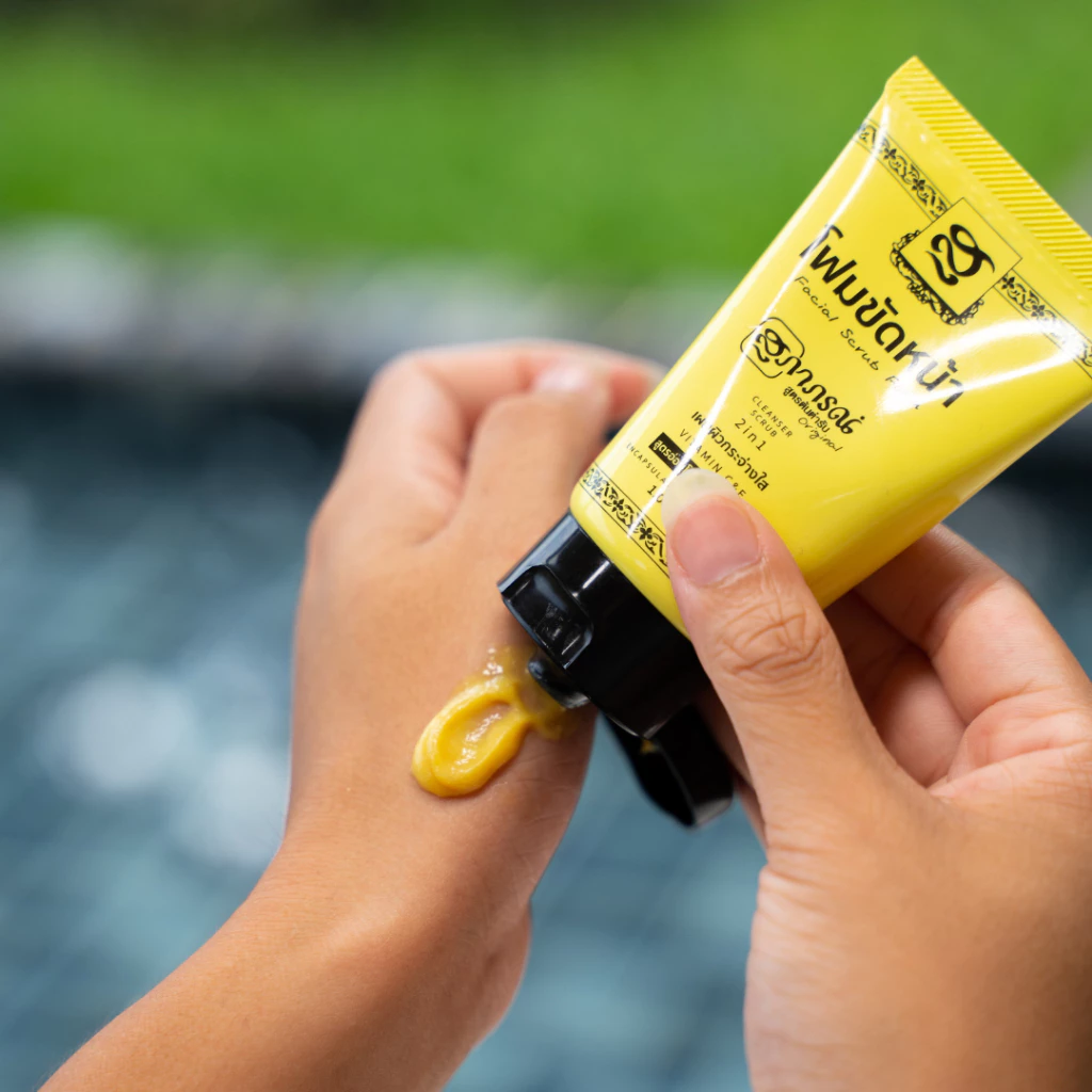 Supaporn Herb Facial Scrub Foam is a 2-in-1 facial cleanser and exfoliator designed to gently cleanse and remove dead skin cells in one step. Formulated with natural scrub particles, it helps remove impurities, excess oil, and dull skin buildup while promoting a smoother and brighter complexion.
