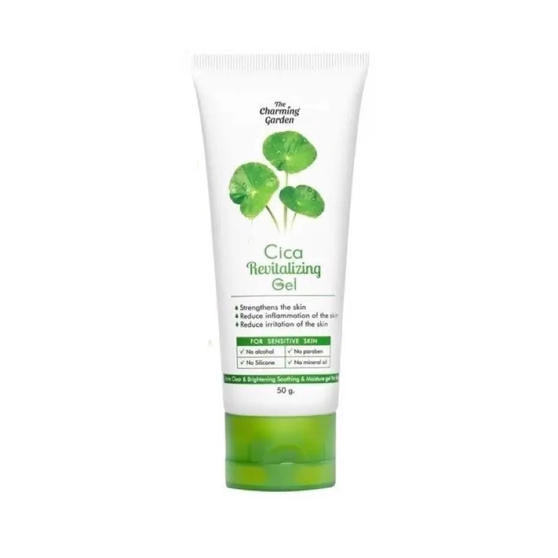 The Charming Garden Cica Revitalizing Gel is a lightweight facial gel enriched with Centella Asiatica extract to help soothe and restore the skin. This gentle formula helps reduce the appearance of acne, calm irritation, and support stronger, healthier-looking skin.